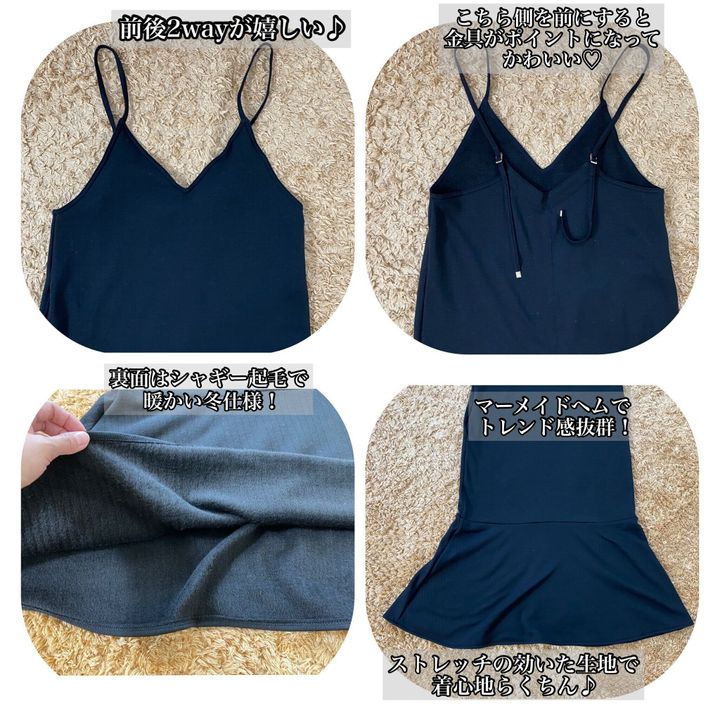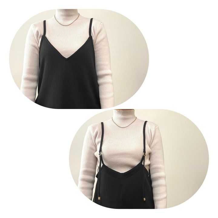 肩紐が細いタイプなので厚手のニットをインナーに入れても着膨れせず、肩紐で長さの調整が可能なのも◎