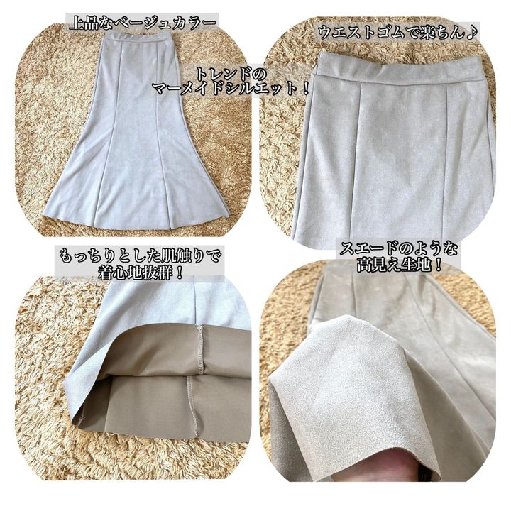 今回は1419円(税込)のプチプラで手に入る、上品なベージュカラーと触り心地もっちりの生地が高見えすぎるマーメイドスカートについてご紹介します。