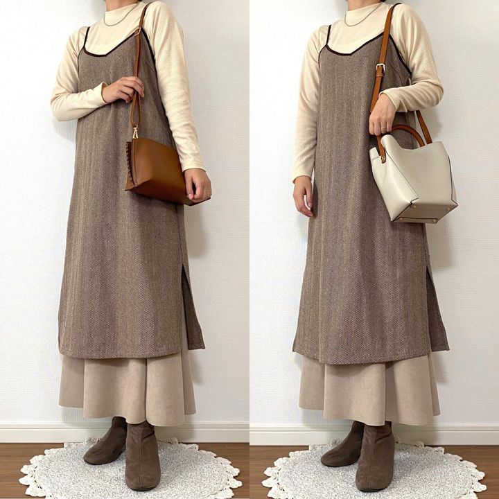 どちらのバッグも落ち着いたブラウンのお色味なので淡色コーデによく馴染んでくれます。