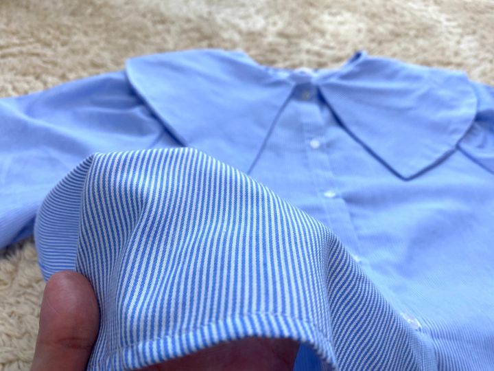 大人っぽいビッグカラーにブルーのストライプが爽やか!