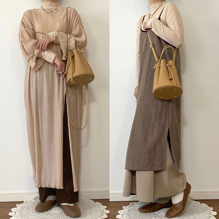 一枚で着るのに抵抗がある方も、上にカーディガンやジレを重ねてしまえば安心感もありますしトレンド感もアップ!