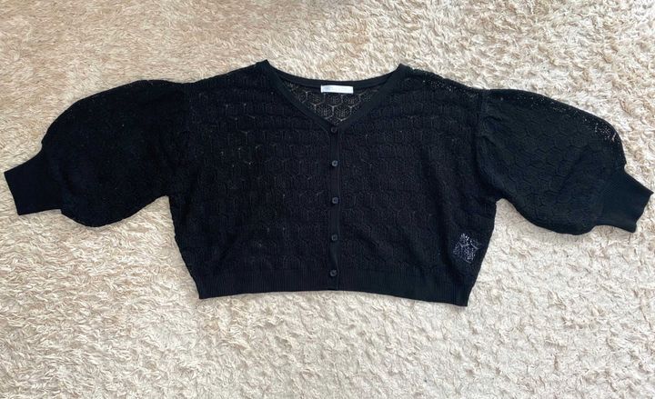 前を開けて羽織るとボレロのようなシルエットでかわいいです。