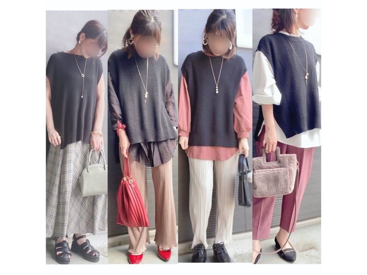 今回は、季節の変わり目にもピッタリなベストの着回しをご紹介します!