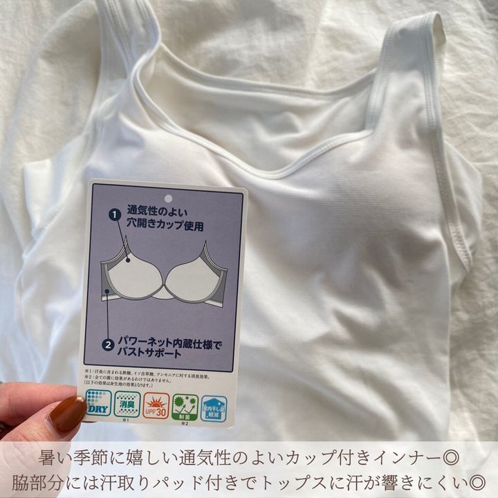 暑い季節に特に嬉しい通気性の良いカップ付きインナーです。