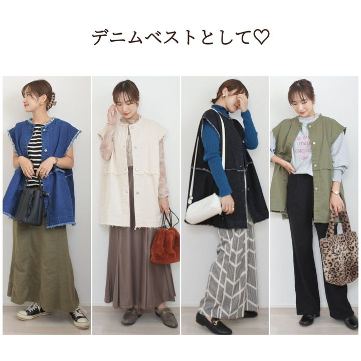 袖を取り外してデニムベストとして着るのもとても可愛いです。