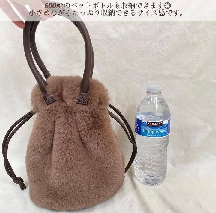 紐を絞ればころんとした形が可愛らしいですが、紐を縛らず持っても可愛いです。
