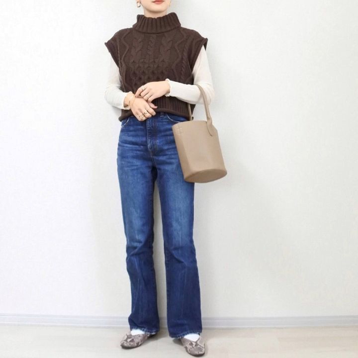 幼くなりがちなベストコーデも大人っぽく仕上がります。