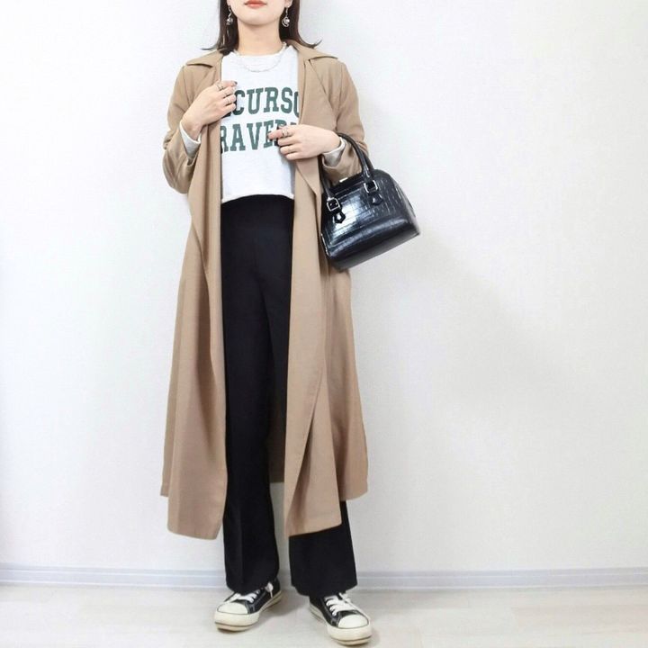 トレンチコートで少しきれいめをプラスするとバランスが取れて◎