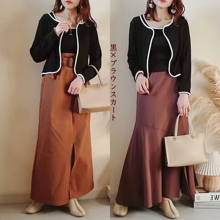 ブラックに秋カラーをコーデで着るだけで秋の先取りコーデの完成です!
