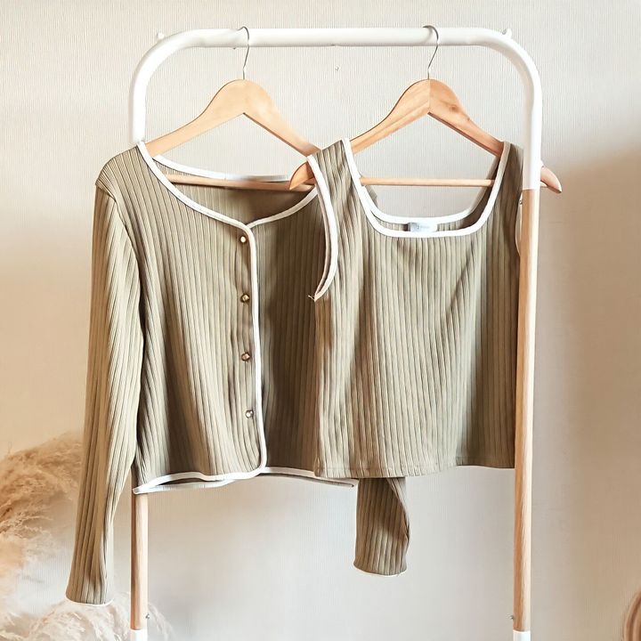 今期トレンドのショートカーデとタンクトップがセットになってなんと1419円!