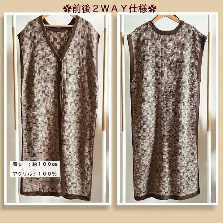 こちら、前後2WAY仕様の商品なのです。どちらを前にしても様になり、トレンド感もあり、ロング丈がオシャレで暖かく着ていただけるロングニットジレなんです!