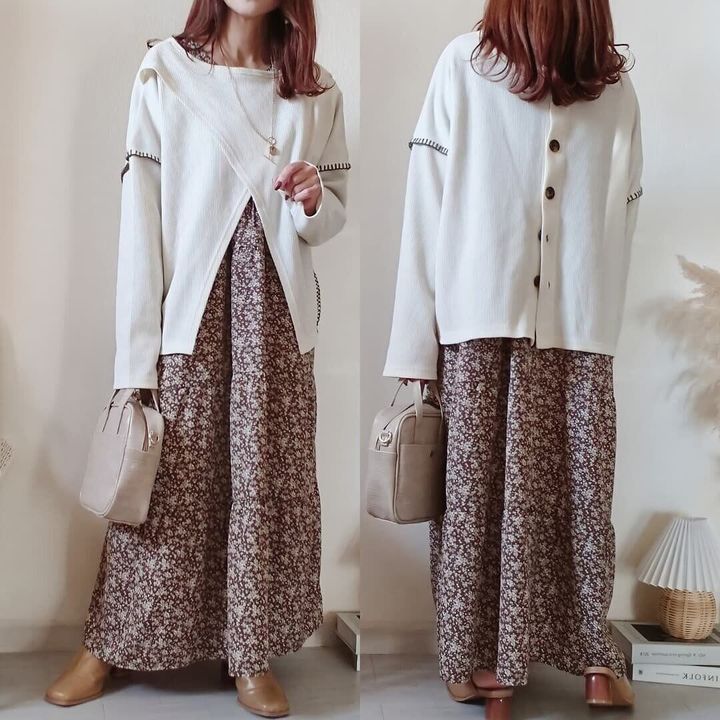 スリットデザイン側を前にして着用してみました。こちらは小花柄デザインが甘さのあるアイテムになりますが、スリットデザインのシャープなカッティングで甘さも抑えられた気がします。