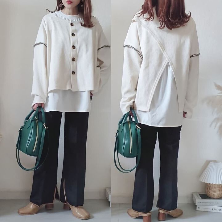 どちらを前にしても可愛い2WAYカーディガンをご紹介させていただきましたが、いかがでしたでしょうか?更にハンドステッチデザインや大き目ボタンも可愛いくて、どこからみても、本当に360度可愛いことには間違いないと思います!