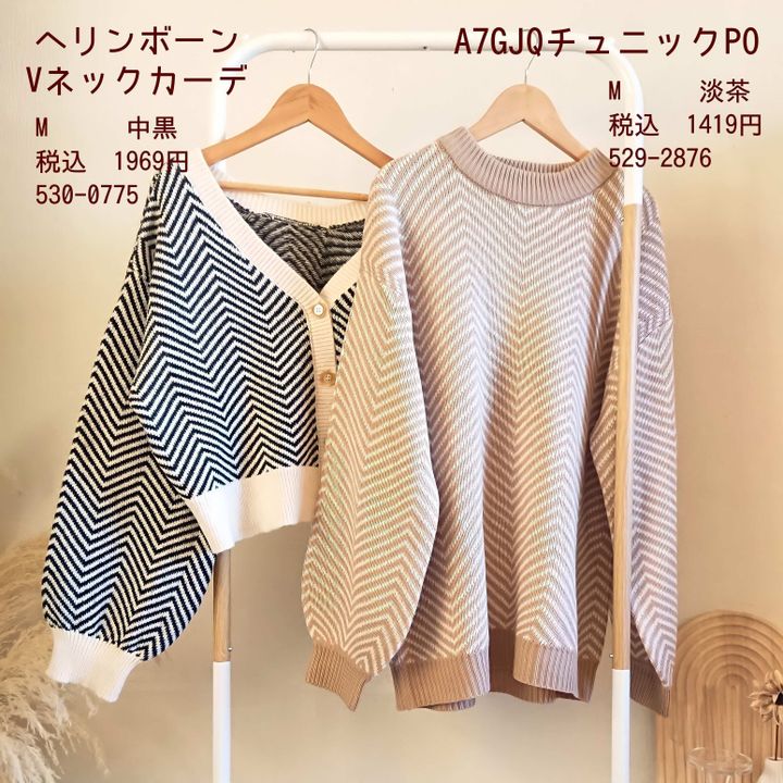 左→ヘリンボーンVネックカーデ ・M /中黒/ 税込1969円 (530-0775)