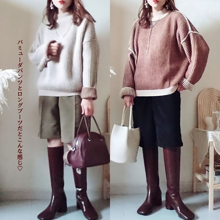 春夏からトレンド入りしたバミューダパンツと今年大注目のロングブーツで最新で旬なコーデです!