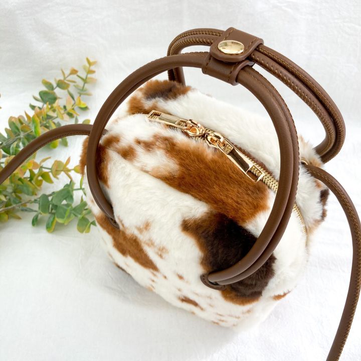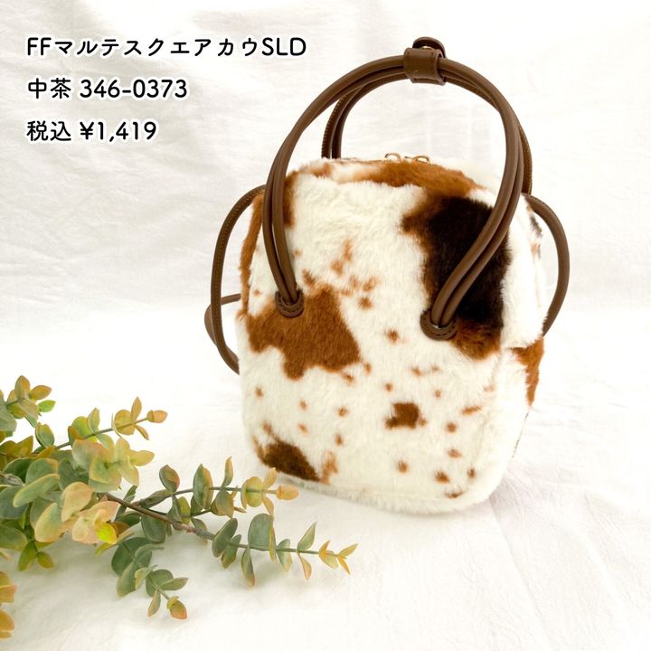 ふわふわファーに牛柄が可愛いスクエアショルダー 税込1,419円