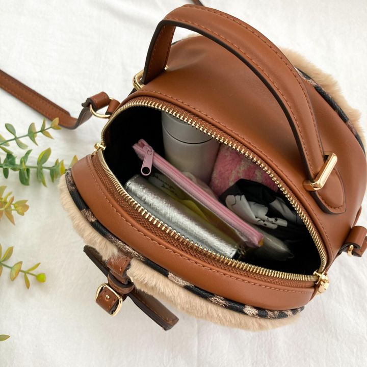 ブラウンのファーバッグも何にでも合わせやすいカラーで重宝すること間違いなし。