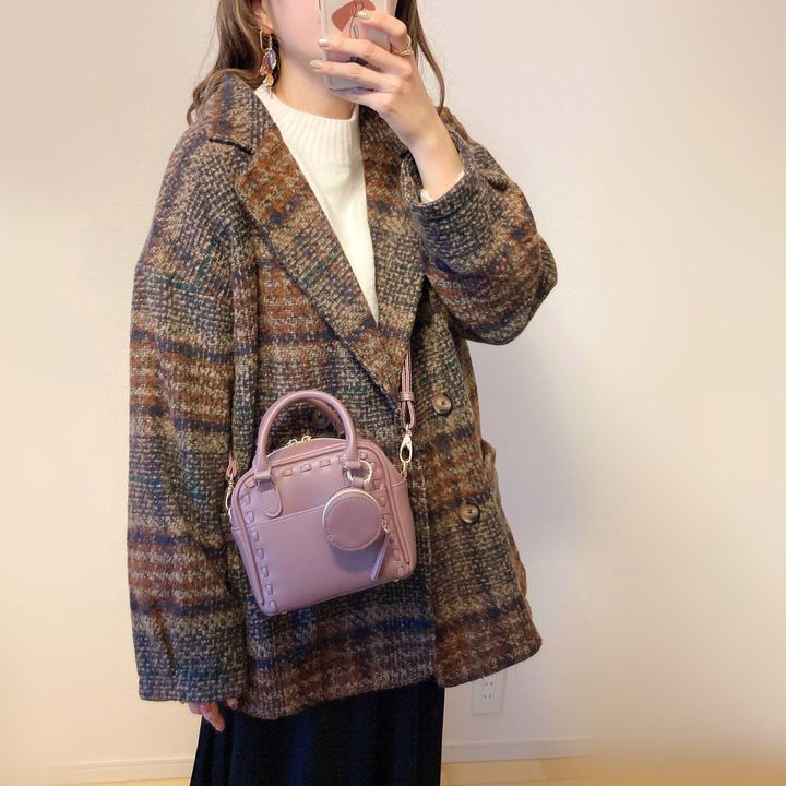 MUMUさんコラボのバッグ2つは、シンプルコーデの差し色にピッタリ。あやさんコラボのバッグはベーシックなブラウンカラーなので、どんな洋服とも合わせやすいですね。