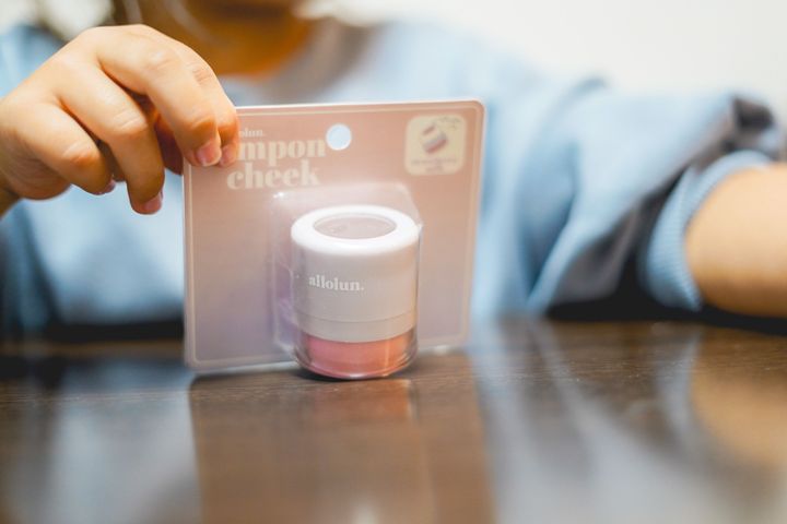 パフが容器に一体化しているので蓋を開けたらぽんぽんとつけるだけで簡単に可愛いほっぺに♪蓋はミラーになっているので便利です◎