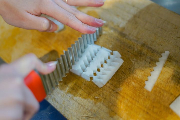 どうやらこちらの商品は類似品に比べて波々が深いそう!そのおかげなのかお野菜のカットがかなりスムーズに進みます。少しの力を加えるだけであっという間に可愛い波々のご登場です♪