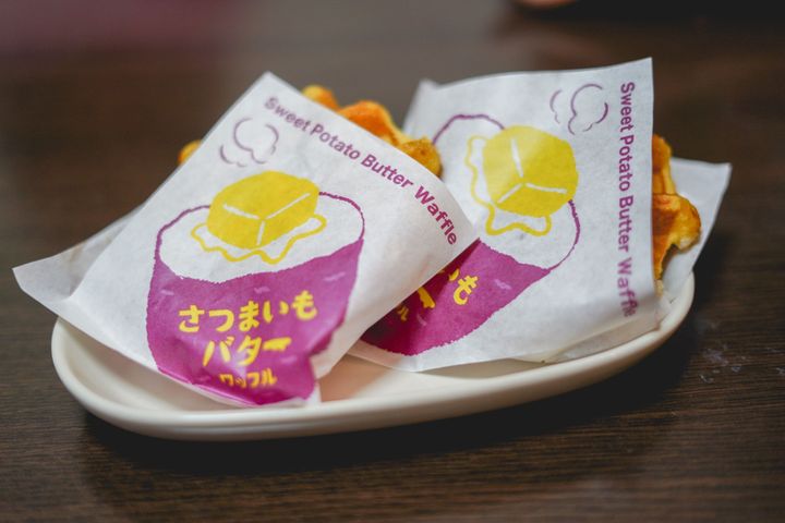 なると金時ダイスが生地に練り込まれているワッフルです♪