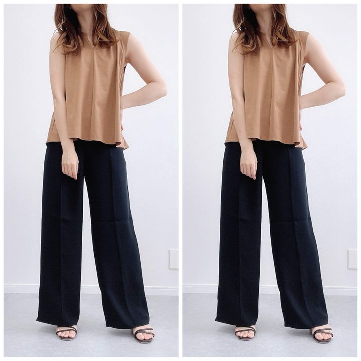 ゆったりしたトップスと合わせてみました。私は骨格ウェーブでゆる×ゆるコーデは似合わないのですがこんな感じのゆるすぎないゆるトップスなら大丈夫かなと思います。ヒールの靴と合わせるとバランス良く着こなせるかなと思います。