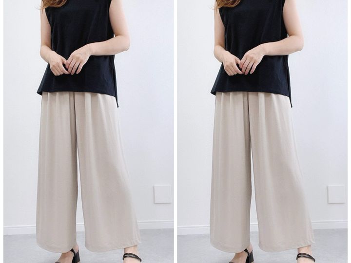 こちらのパンツは履き心地が良く気持ちが良いです。暑い今の時期でもサラッと履けるので保育園の送迎時など出番が多いパンツです。私はいつもMサイズを履くことが多いですが試着したらMサイズでは少し大きくてウエスト位置が下がってしまったのでSサイズにしました。元々丈は長めなデザインなのでSサイズで丈が足りないということはありませんでした。試着ができるなら一度試着するのをおすすめします。