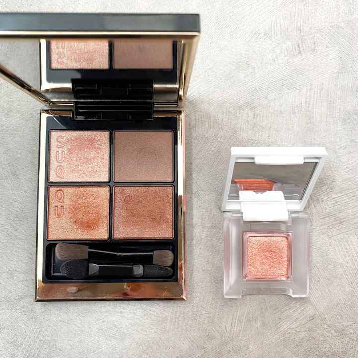 シアーで透明感のある発色で、ラメやパールが入っていると、上から重ねやすく、先につけたアイシャドウの良さを損なわずに、ブルべ寄りに馴染んでくれます。