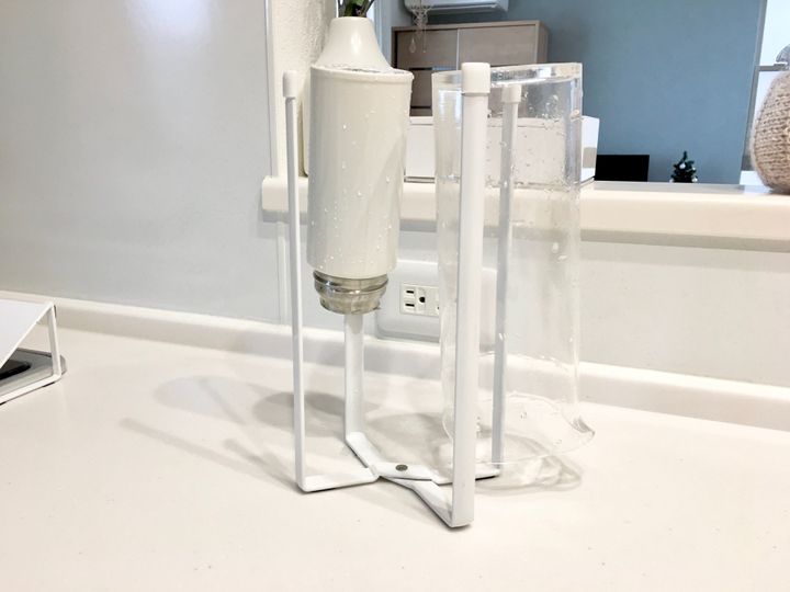 軽すぎず安定感があるので、重さのある水筒を差しても倒れることはありません。我が家ではピッチャーもこの商品を使って干しています。