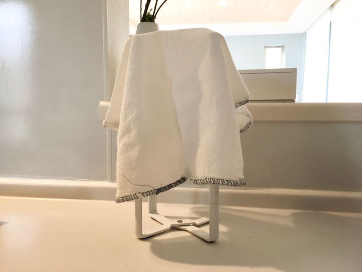 夜、最後拭きあげに使った布巾はフックにかけて干すことが多いですが、日中の布巾置き場はココ。ベタっと畳んで置いておくより衛生的で気に入っています。