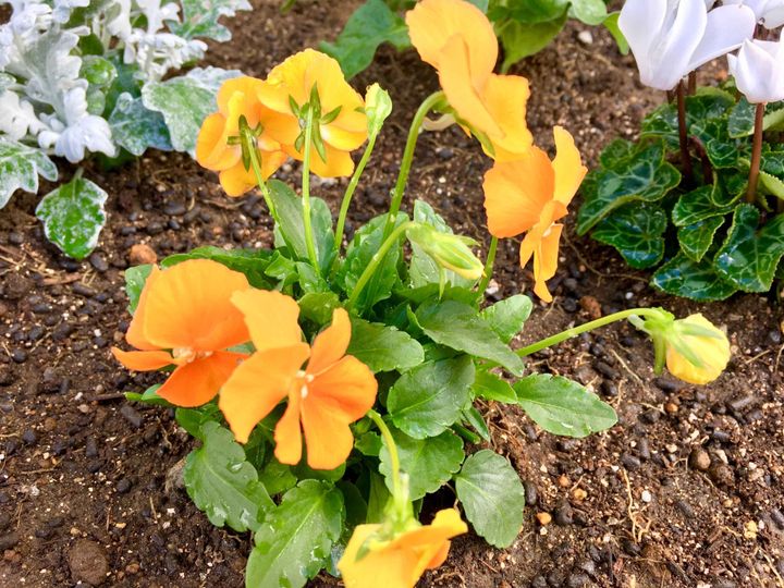 スーパーなどにも売っていて比較的手に入れやすいお花。同じスミレ科の「パンジー」よりやや小ぶりな花びらが特徴です。