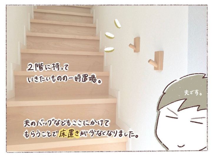 一時置き場が明確になったことで、夫の「バッグ床置き問題」も解決することができました。