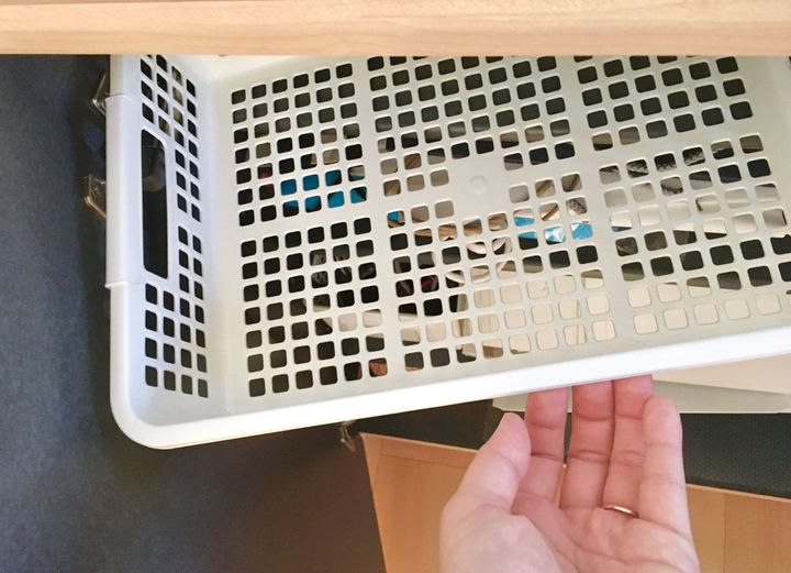 すぐに必要ではないけれど長期間保存すべき書類は、トレーの下にある引き出しにファイリング。何が入っているか一目でわかった方がいいので、クリアファイルを活用することが多いです。