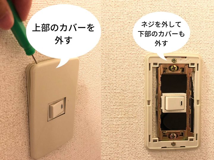 そのままでも悪くはないけど、やっぱりちょっとヤボったい印象のスイッチカバー。