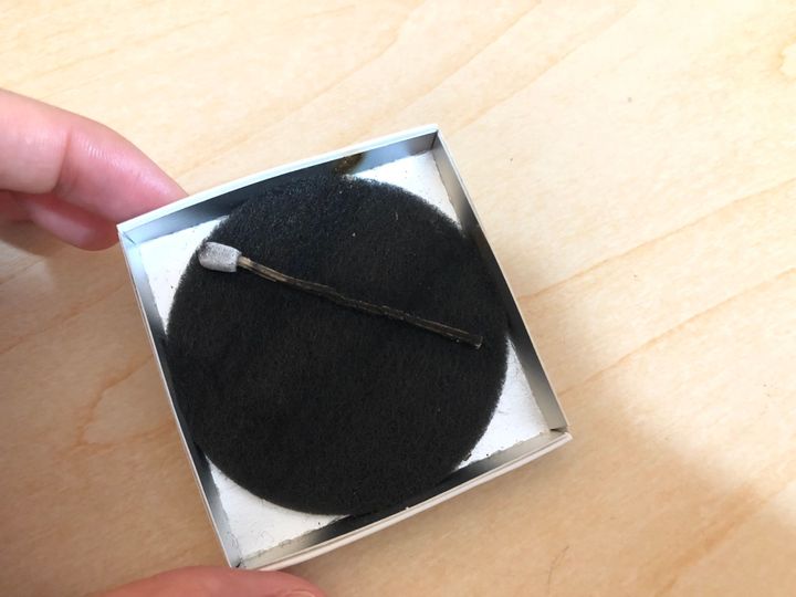 マッチを擦り着火させたら火が自然と消えるまで待ち、その後専用マットに置きます。