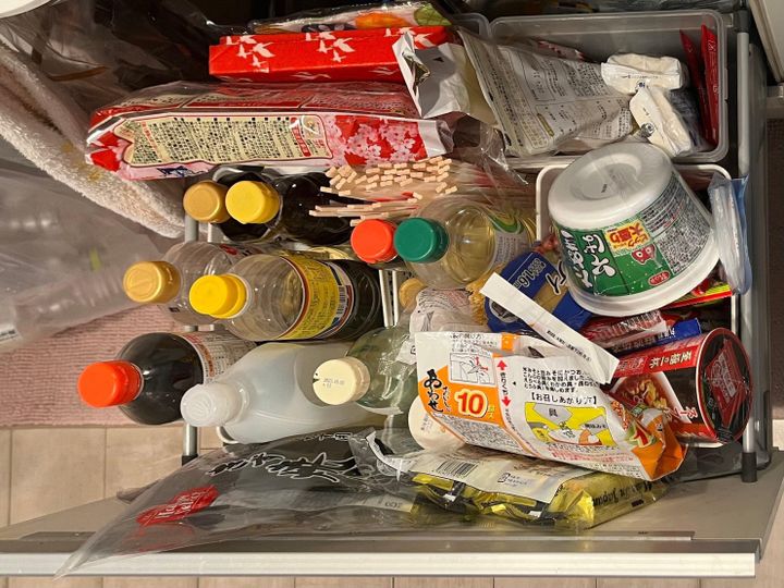 モノが入りきらず、調味料や食材や箸やらごちゃまぜになっているうえに、