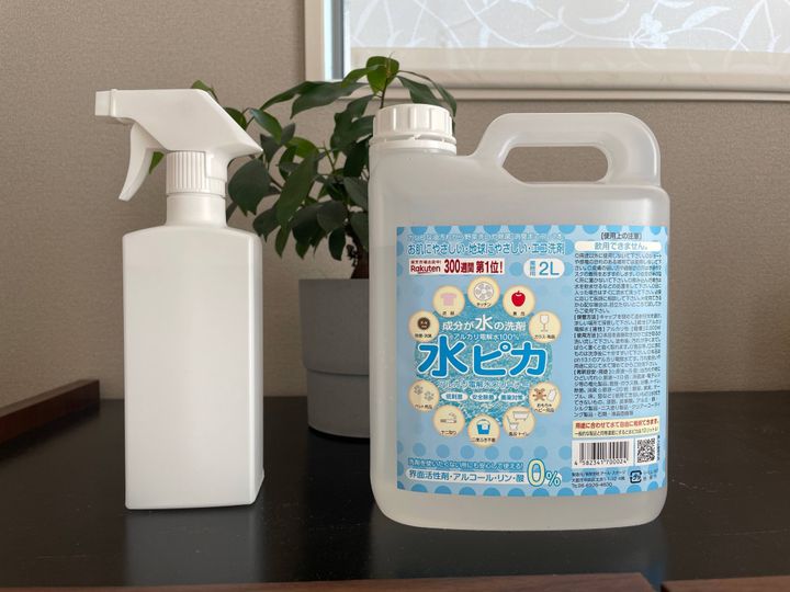 我が家では、1階と2階のそれぞれに水ピカを10倍に薄めたスプレーを置いています。