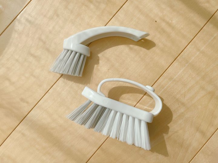 「3WAYタイルブラシ」のポイントは、ヘッド部分が取り外せることです。これのおかげで、狭い隙間や細かい部分の汚れも簡単に落とすことができます。特にサッシのレール部分や窓枠の角に入り込んだ花粉やホコリも、しっかりとかき出せるので、普段手が届かない部分の掃除がスムーズになります!