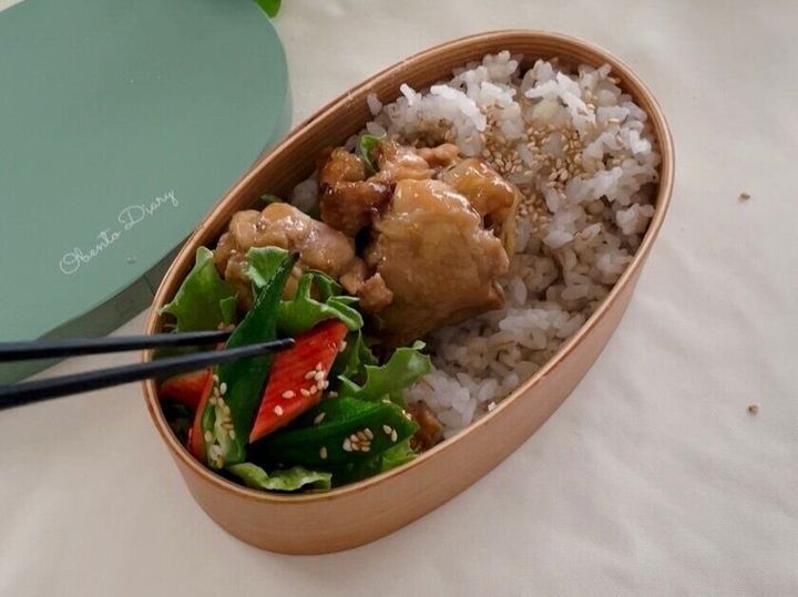 この日のメインは「鶏手羽元とゆで卵のさっぱり煮」です。普通なら一緒に盛り付けがちですが、あえて別々に詰めることで、二品に見えるお得ワザ!詰めるお弁当おかずの品数を簡単に増やせますよ。