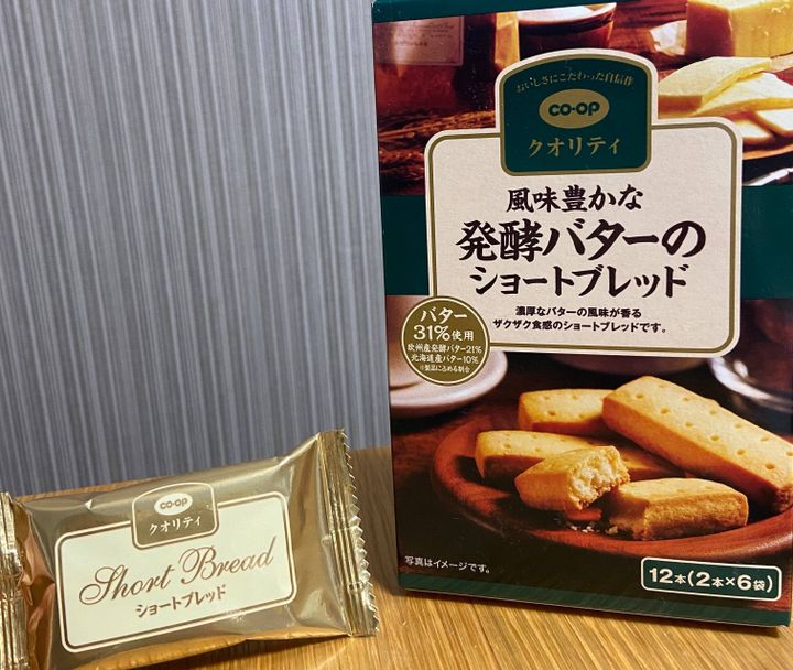 私は毎週コープで食料を注文しているのですが、その中でも私がリピートしているオススメの商品が「コープクオリティ 風味豊かな発酵バターのショートブレッド」です。