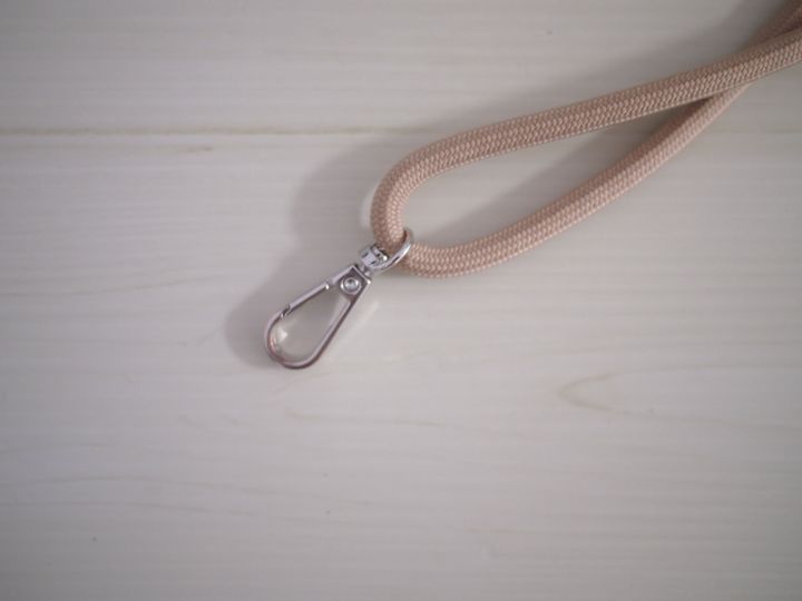 一方で、右のセリアで販売されているものは、布製のリボンのような素材となっており、金具を通すところが横向きに。