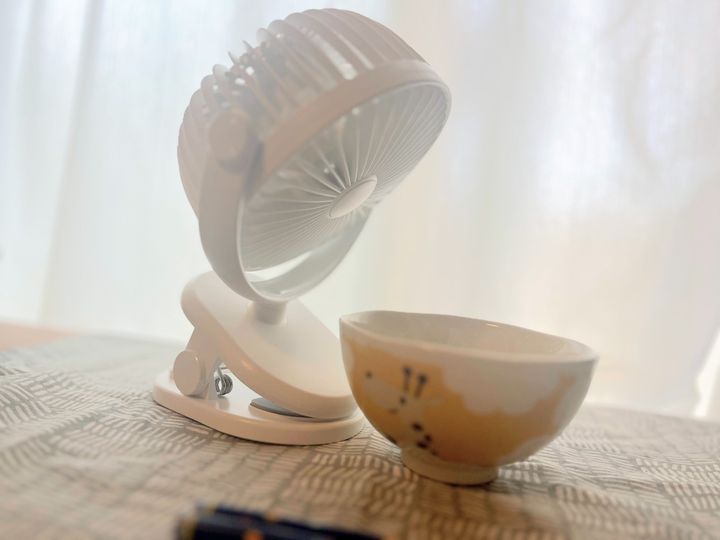 以前は手で持つタイプの扇風機を使っていたのですが、これだと持っておかなくてはならず冷めるまで他の食事ができない不便が。