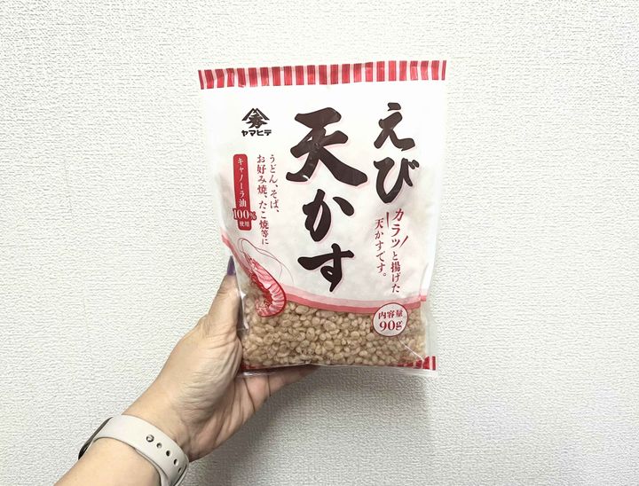 3つ目はお好み焼きやたこ焼きからうどん、おにぎりまで幅広い用途で使える天かす(揚げ玉)です。