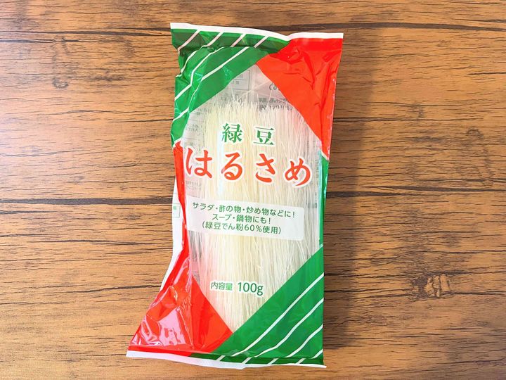 はじめにご紹介するのは春雨です。春雨はマーボー春雨やスープ、サラダなど幅広いメニューに使える万能食材ですよね。業務スーパーでは100円を切る65円とおもとめやすいお値段で購入することができます。
