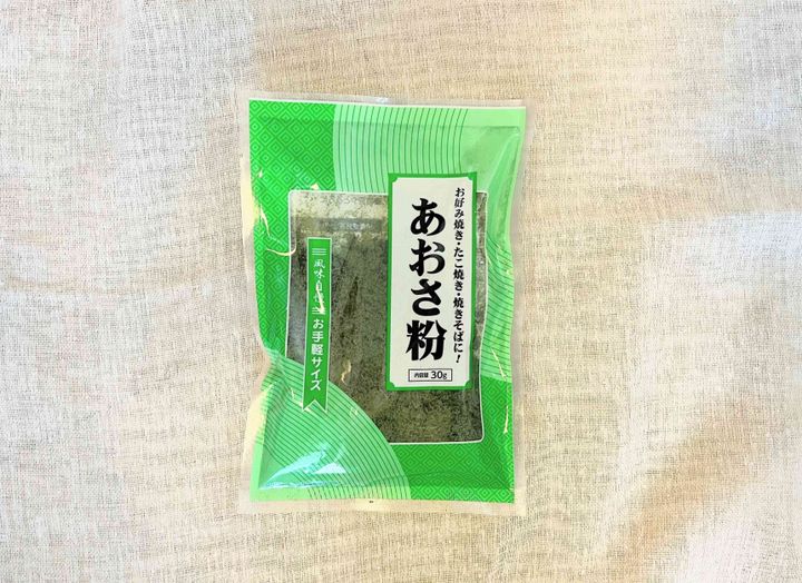 4つめは、ちくわの磯辺揚げからお好み焼き、焼きそばまで大活躍する「あおさ粉」です。