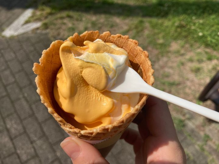 少し崩れしまいましたが、限定のフレーバーソフトクリームを優待券でGET!!