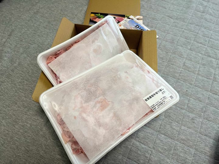 返礼品が届き段ボールをあけた瞬間、目を疑うほどの刺しが入ったきれいなお肉がたっぷり!
