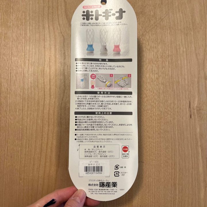 さらに立たせておくこともでき、とってがついているので、吊り下げて保管もできる、優しい配慮がされている「米トギーナ」。
