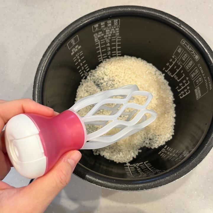 そんなときに見つけた「米トギーナ」は、手でシャカシャカとお米を研ぐ代わりに、手を濡らさずお米を研いでくれます。