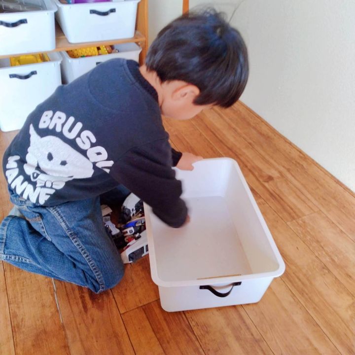 子どもと一緒に、おもちゃ箱もフキフキ。ついでに、不要なおもちゃも仕分けできました。